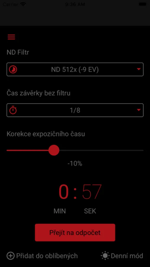 - Možnost nastavení síly ND filtru a standardního expozičního času