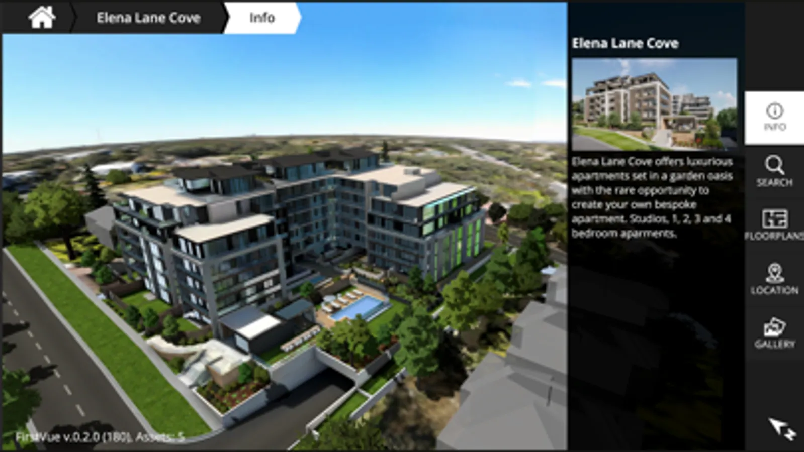 This app is powered by FirstVue™, a realtime 3D visualisation platform that helps showcase new developments in a more effective and intuitive way.