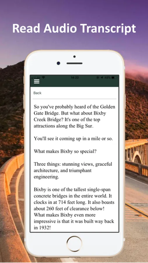 Welcome to the GPS-enabled offline driving tour of California’s famous Pacific Coast Highway! Also known as Highway 1, this tour stretches from San Francisco to Los Angeles. It’s one of the most beautiful coastlines in the world! The tour also includes a popular scenic detour along Monterey’s world-famous 17 Mile Drive at Pebble Beach.