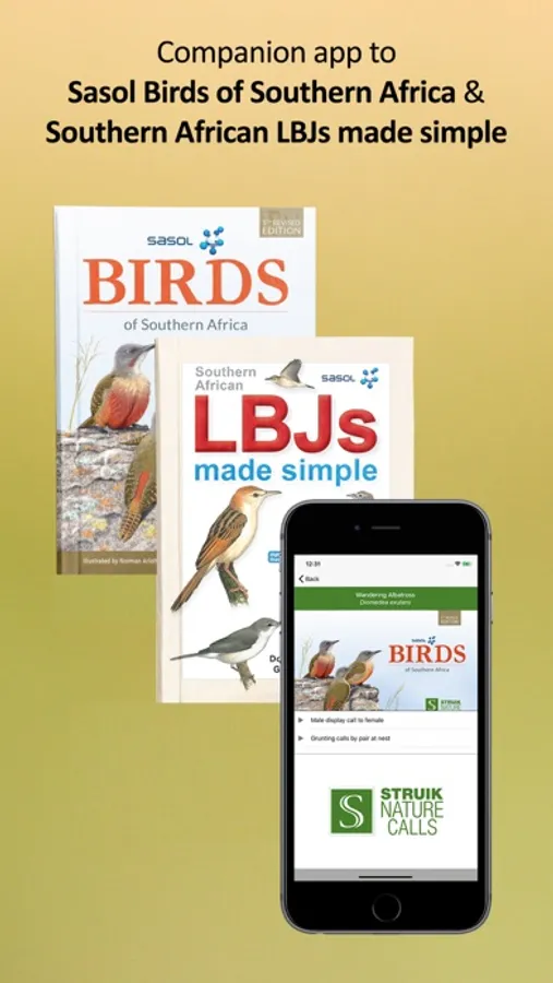 Scan barcodes in the Sasol Birds of Southern Africa and Southern African LBJs made simple books to play over 1000 bird calls.