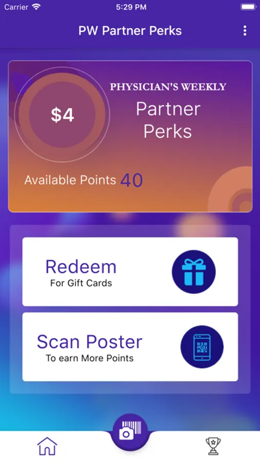 Get points each time you receive your Physician's Weekly poster and earn gift cards to your favorite stores and restaurants! PW Partner Perks is a free rewards program for medical practices and hospitals who are part of our Physician’s Weekly poster network. Download the app and earn 90 bonus points just for creating an account! Using the PW Partner Perks app, point your mobile device at the QR code on your Physician’s Weekly poster and earn an additional 10 points to redeem a $10 gift card, sent directly to your email.