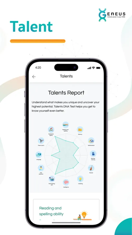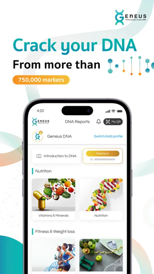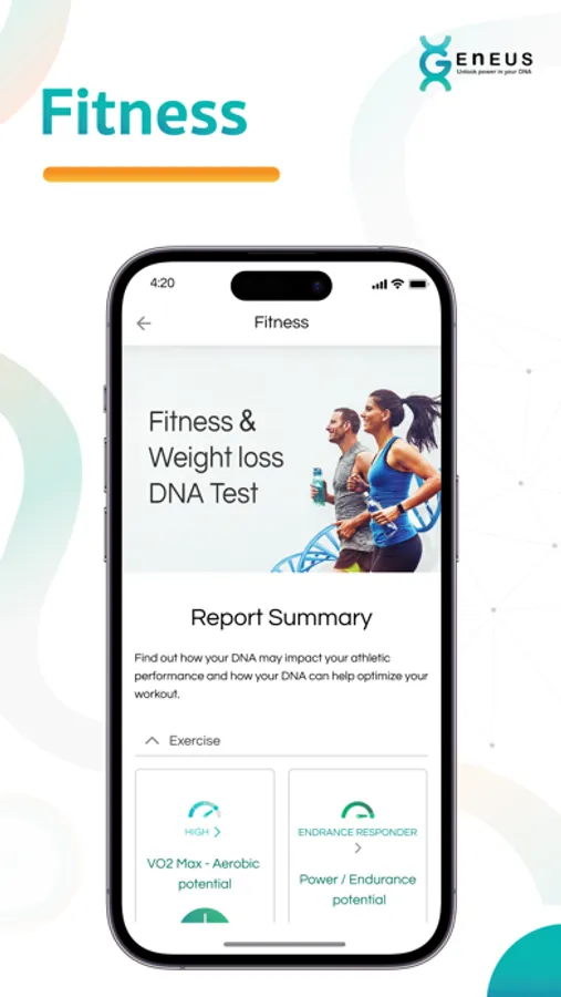 Geneus decodes genetic markers in your DNA to create the personalized DNA-based solutions to your unique needs for you to maximize your results from lifestyle modification.