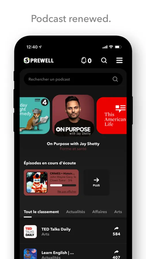 "Sprewell Podcast App & Player" is the best Podcast Apple App with + 1,000,000 podcasts worldwide!