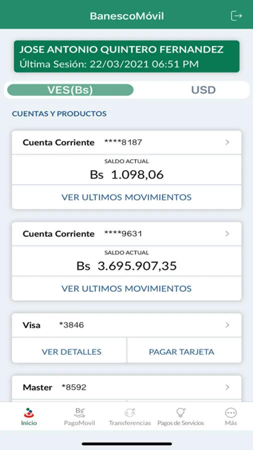 - Consultar el saldo de tus productos en moneda nacional o extranjera.