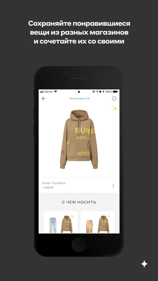 Выбирай вещи из ассортимента самых актуальных брендов и смотри, как они сочетаются с твоими вещами ещё до покупки. Так в твоем гардеробе не будет ничего лишнего.