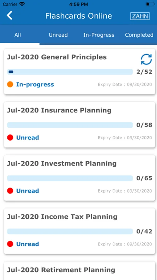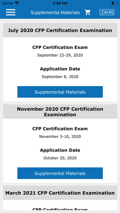 Zahn Student Center is a mobile resource for Zahn Programs. The app is designed to assist in preparation with Zahn Programs. The different resources will enhance the ease of learning difficult concepts. All resources are designed to complement Zahn CFP and FINRA licensing programs.