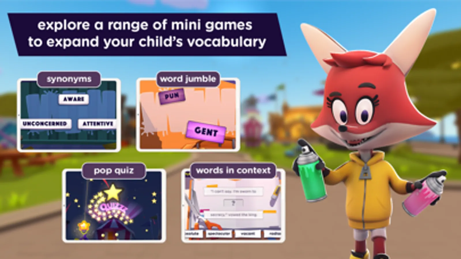 Get the app that’s 100% fun, 100% learning, 100% GAME! Watch as your kids play their way to improved vocabulary test scores—up to 43% in our focus group—and learn up to 1,000 new words a year with 20 minutes of gameplay per day.