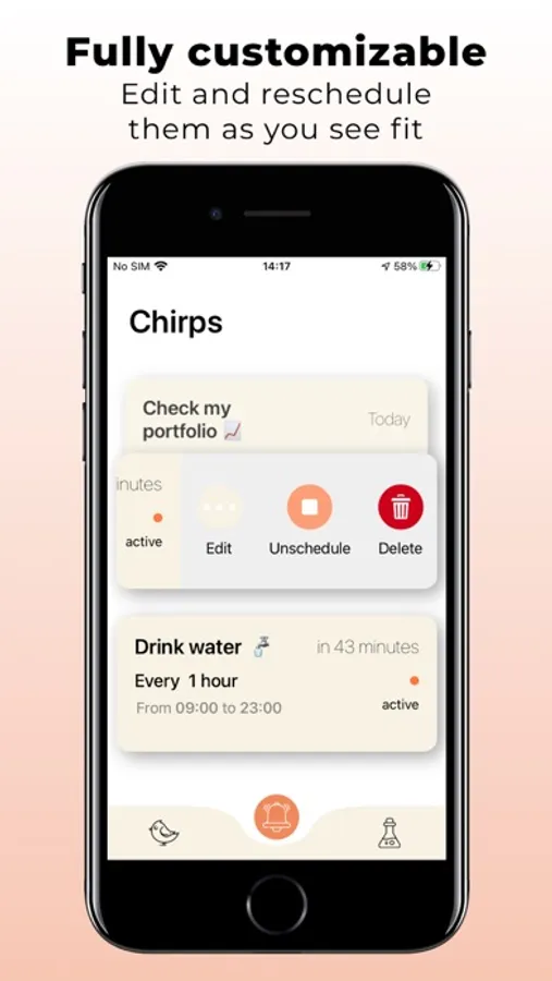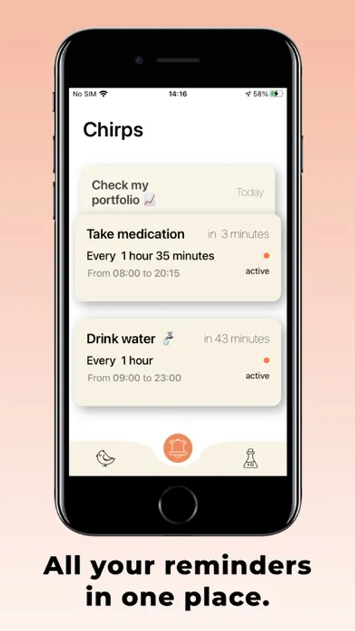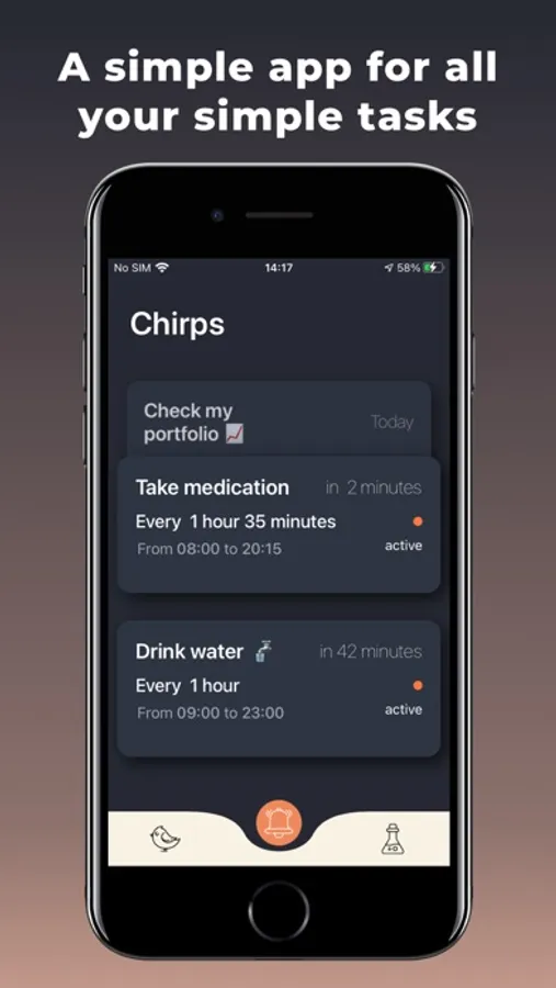 It takes just a few seconds to schedule notifications. The app will chirp for you to remind you of whatever you want.