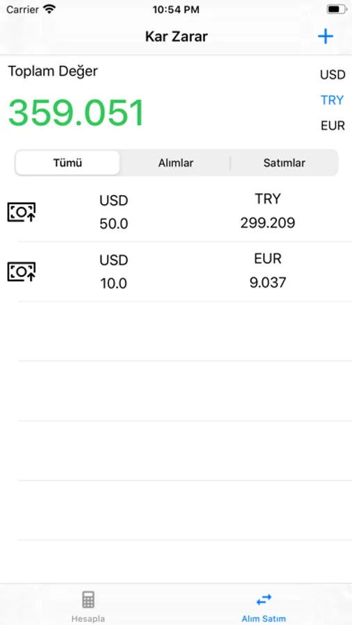 Döviz alış-verişlerinizi kolayca hesaplayın geçmişe dönük alış verişlerinizi kayıtlı tutabilirsiniz.