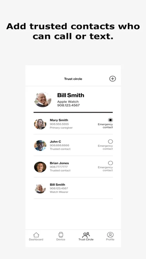 * No limit on the number of contacts that may be included in the watch user’s Care Smart Trust Circle