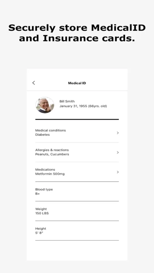 * Update the watch user’s profile to keep their medical ID and insurance cards stored securely and always accessible when needed.
