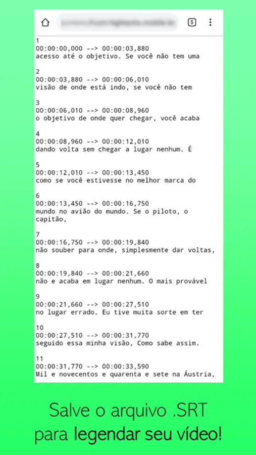 > Um arquivo .srt com a legenda do seu arquivo com o tempo sincronizado