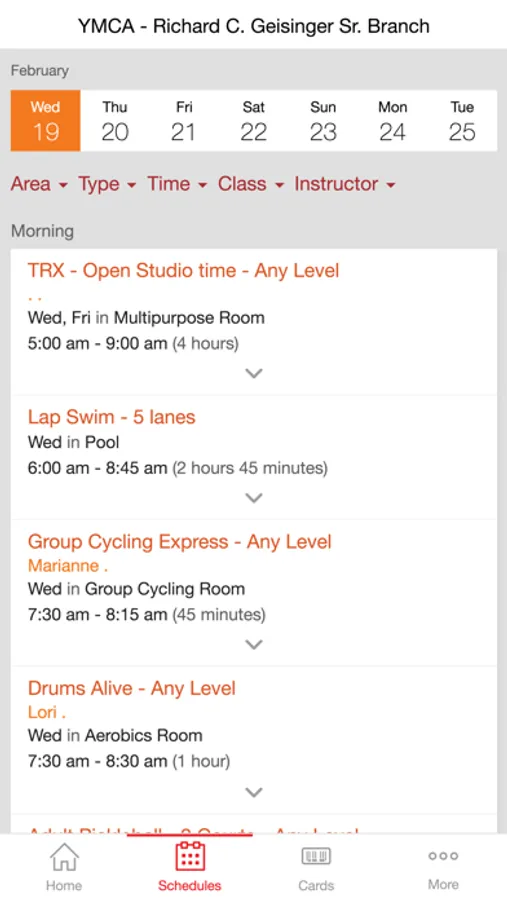 • Easily view schedules for each day and filter for the types of classes that you like.