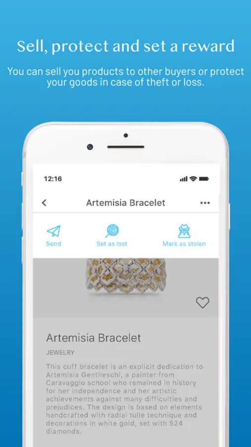 You can access your personal gallery of your luxury goods, select your favorites and access the product sheet to find out the official images, the most important information and details, such as brand, model, size, and verify their origin and materials, consult the manufacturer's information and see the previous owners.