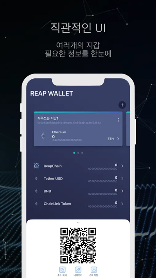 이더리움과 토큰을 관리할수 있는 전자지갑 REAP WALLET입니다.