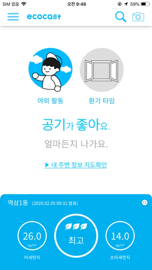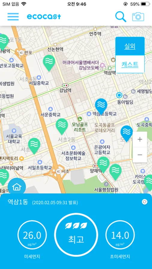 또한 사용자의 참여를 통해 공기질 정보를 나누고 공유하는 “에코캐스트” 서비스를 운영합니다.
