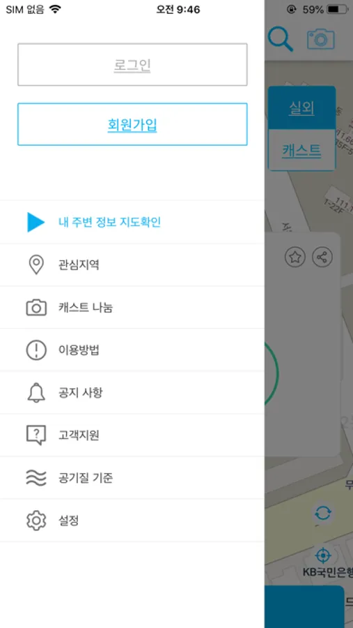 - 관심 장소를 등록하면 메뉴 화면에서 공기질을 확인할 수 있습니다.