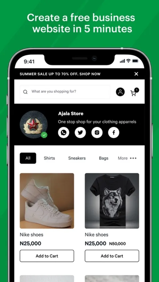 Bumpa is the easiest way to set up and manage your online store, including a shopping cart, secure payment gateway, and inventory management. Whether you sell clothes, jewelry, electronics or furniture, Salescabal has everything you need to grow your business and engage with your customers.
