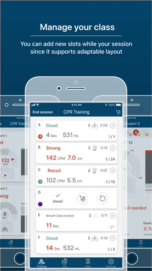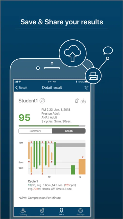 The PRESTAN CPR Feedback app allows instructors to provide comprehensive CPR training while monitoring CPR performance for up to six (6) students at a time. This app is also equipped with a reporting feature that allows for CPR training results to be downloaded directly from the app.