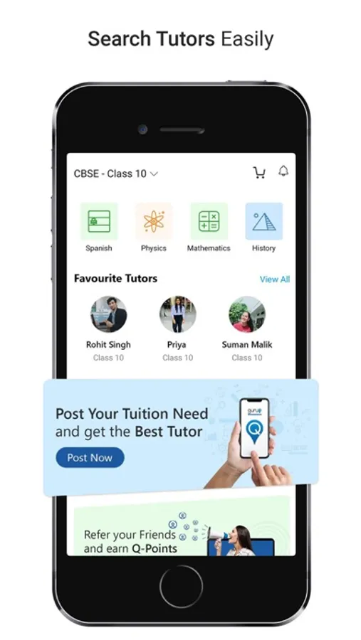 - Broadcast your unique learning needs and budget to all the relevant tutors in the GuruQ database, and hire the best tutor for yourself from all interested tutors who respond to your requirement.