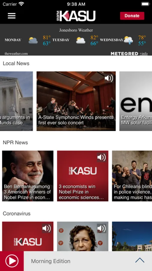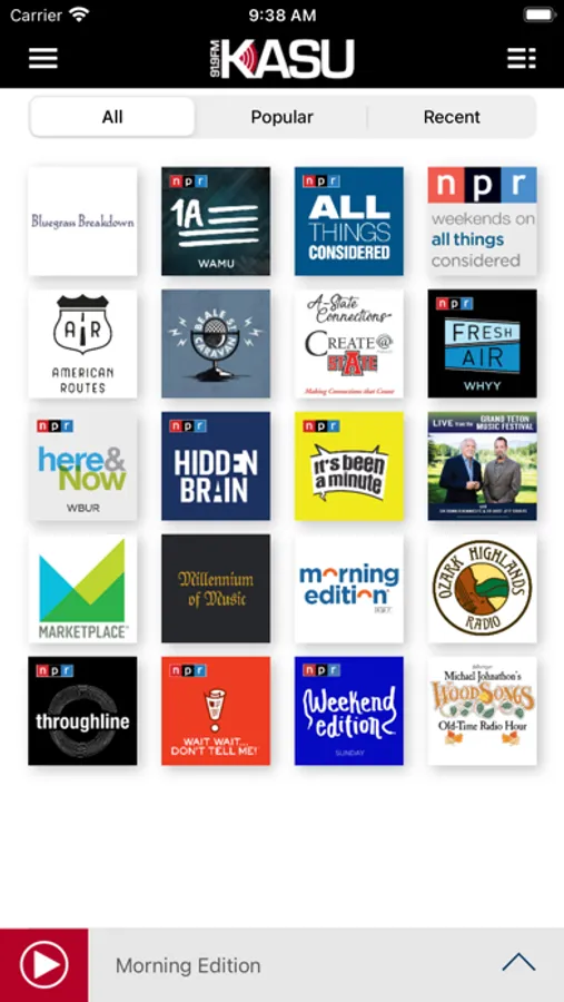 • Listen to live streams from KASU even while traveling! Start the app and your favorite station starts playing.