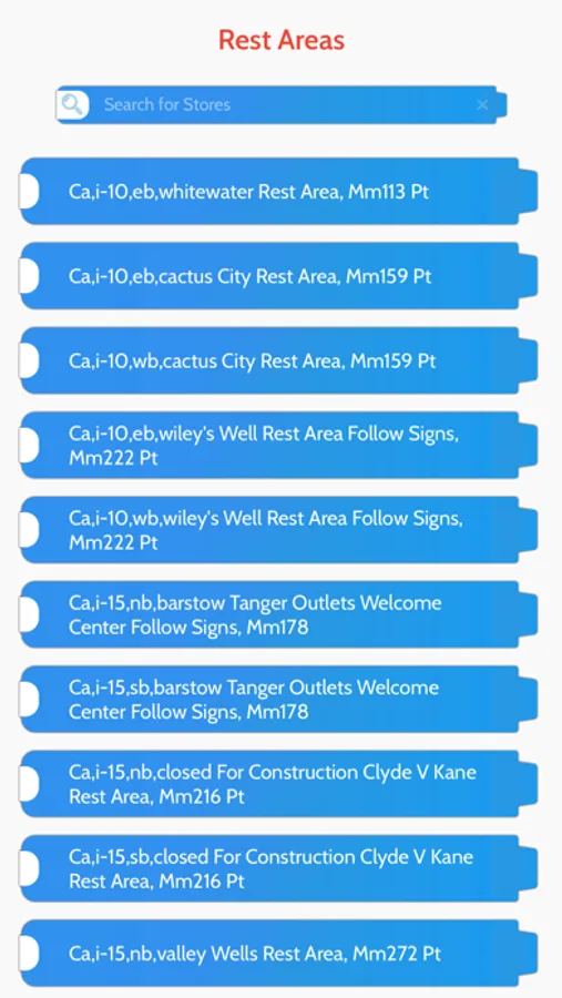 Easily find all rest stops through the entire United States. A simple, fast app to all Rest Stop locations. This app features the locations of over 2,000 rest areas across the United States.
