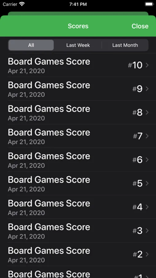 Just simply create a new Game and add new Scores to it. Score Tracker will keep track of each Player and Score and generate useful long term information