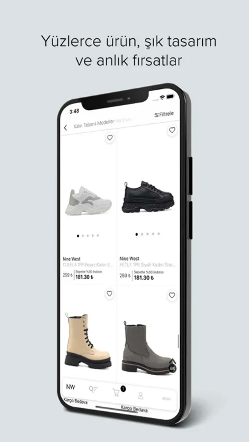 Nine West mobil uygulamamızı indirin rahat, güvenli ve uygun alışverişin tadını çıkartın.