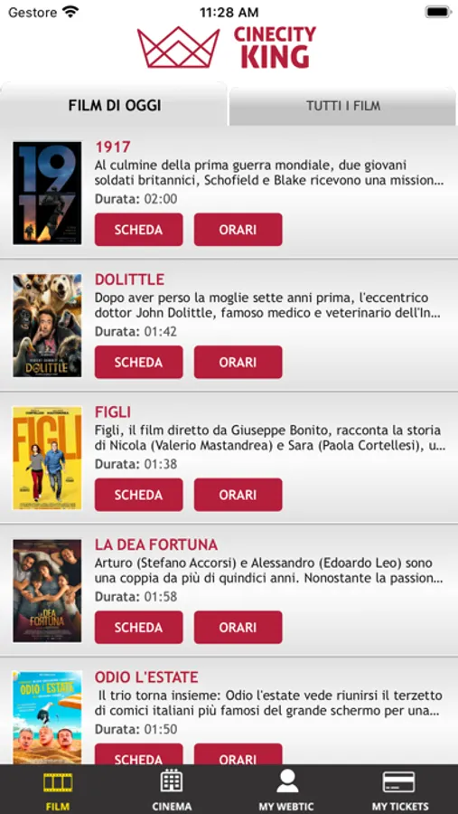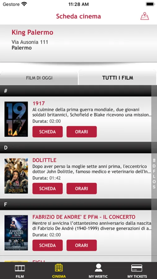 Applicazione di Crea Informatica, per l'acquisto e la prenotazione dei posti nel prestigioso cinema King di Palermo.
