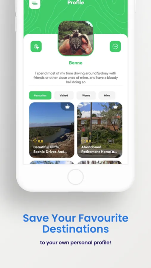 • Save your favourite locations to your own personal profile so you can view them all together on your “Favourites” list!
