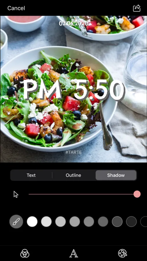 - Choose colors of text, outline and shadow to make the text beautiful