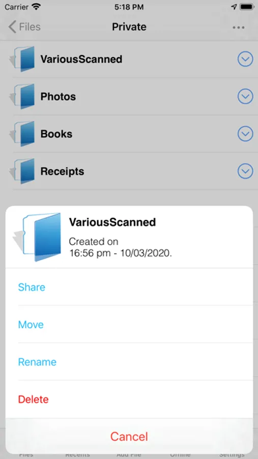 The file management application has been developed in order to meet the need of institutions and organizations to store, organize and share files with other in-house personnel through a secure environment via mobile devices.
