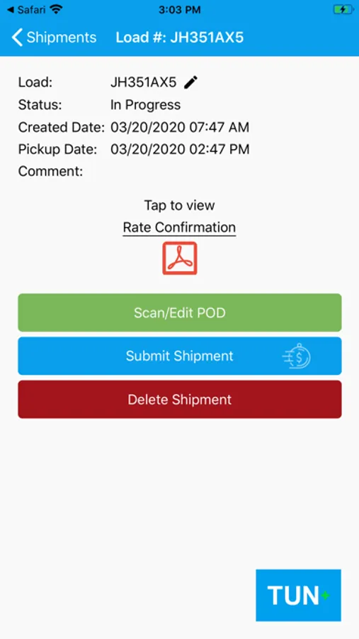 Download the Rate Confirmation direct to the TUN+ APP.