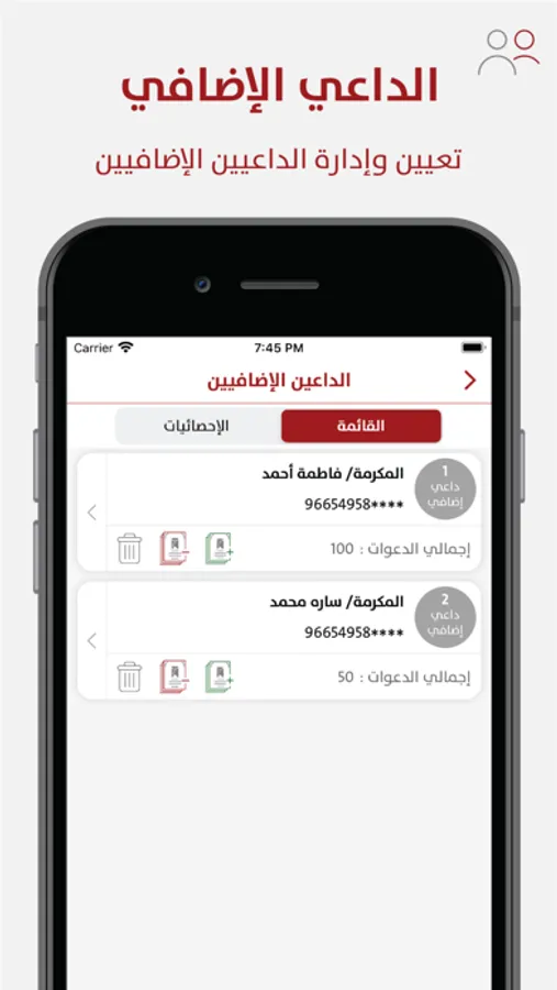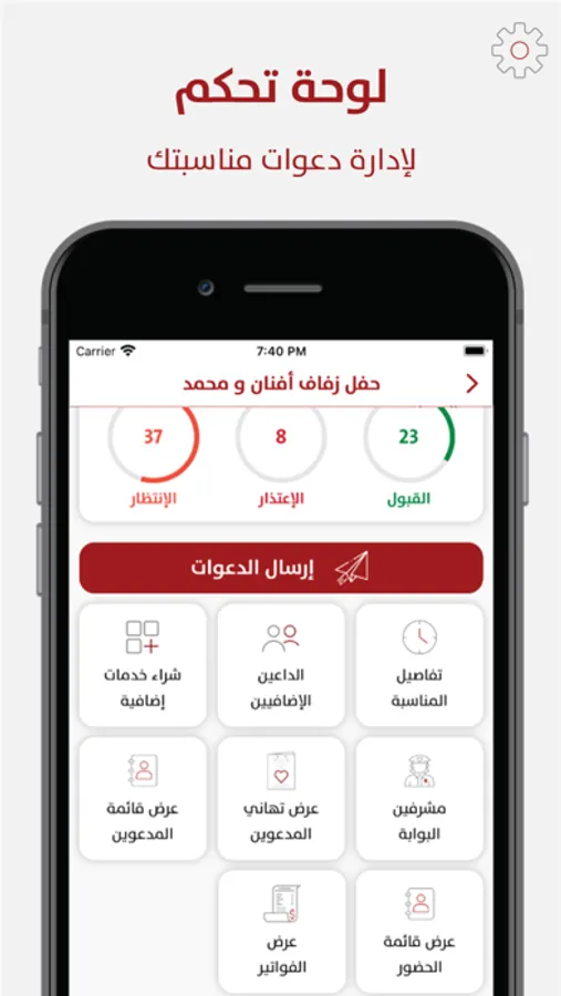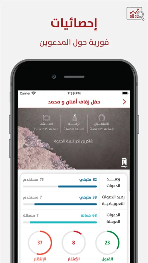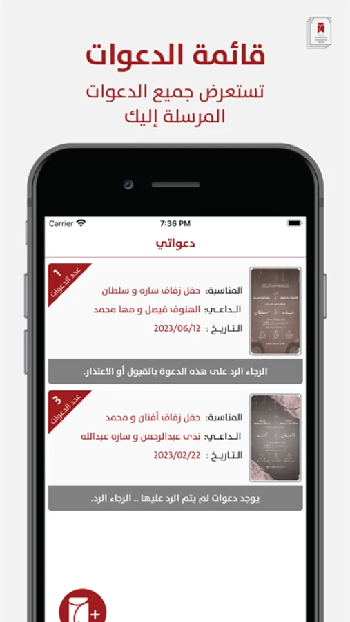 إرسال الدعوات عبر التطبيق والرسائل النصية (SMS).