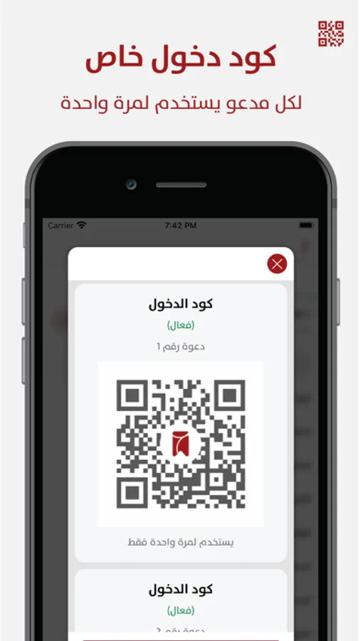 توفير رمز دخول (QR Code) لكل مدعو يستخدم لمرة واحدة.