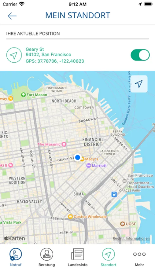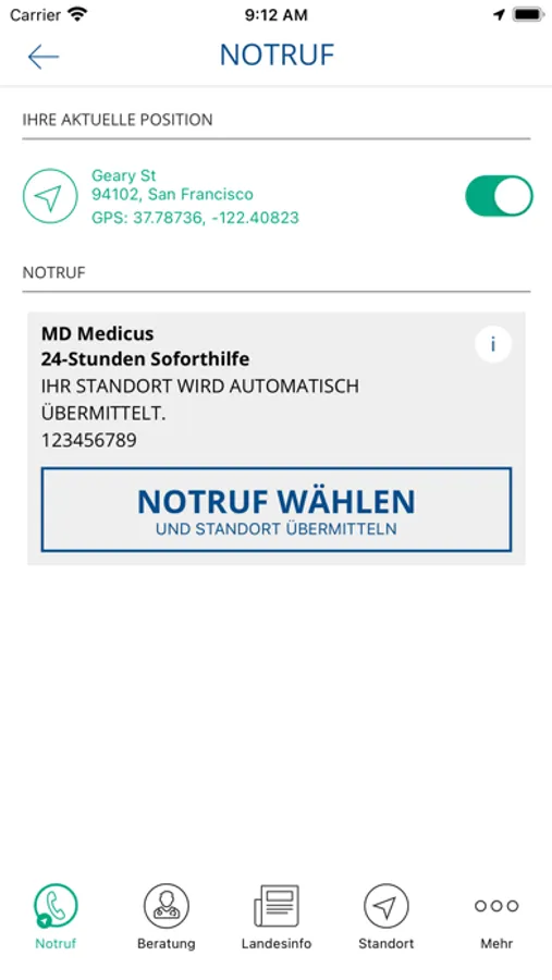 Die Hilferuf im In- und Ausland-App hilft wann immer Sie Hilfe benötigen. Die App verfügt über eine Notruffunktion, bei der Sie im Notfall direkt mit einem medizinischen ServiceCenter verbunden werden. Gleichzeitig wird ihr Standort an das ServiceCenter übermittelt und die medizinischen Mitarbeiter können so z. B. Ärzte oder Krankenhäuser in Ihrer Umgebung heraussuchen.