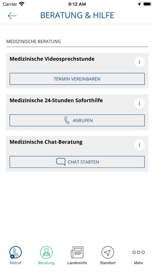 Neben dieser Funktion besteht auch die Möglichkeit des Videochats mit einem MD Medicus Arzt und Sie erhalten nützliche Länderinformationen und Warnmeldungen.
