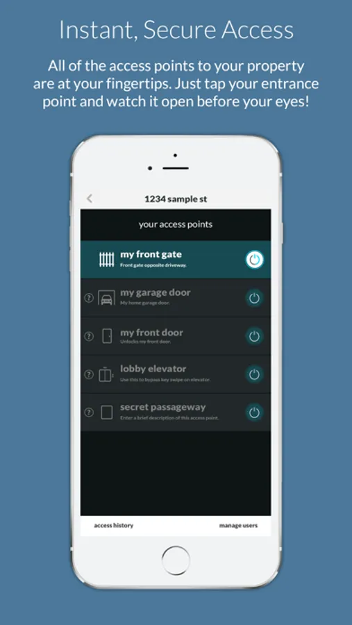 Think of ParqEx Access+ provides you with Virtual Gate, Garage, Door, Electronic Lock Opener (Requires installation and configuration of ParqEx Access+ hardware). This single app can control them all.