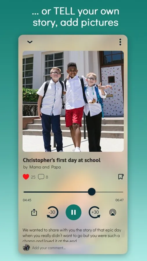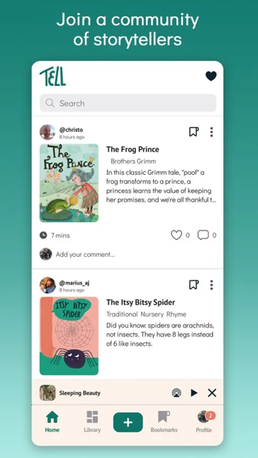 Each story on TELL has its own audio track, but the real beauty comes in narrating your own. TELL makes everyone a storyteller!