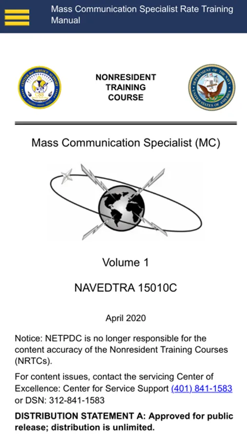 The Mass Communication Specialist Rate Training Manual (RTM) mobile application provides Sailors a convenient way to study for the rating exams and simply make themselves better at their everyday jobs – anytime, anywhere. This app does have active links; however, it is designed to work without any connectivity.