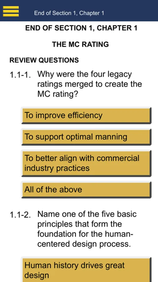 MCs can use the search feature inside the app; bookmark favorite content; find contact information for emergency support; and send questions, comments or other input using the in-app feedback email. This RTM is also a key portion of the MC advancement exam bibliography.