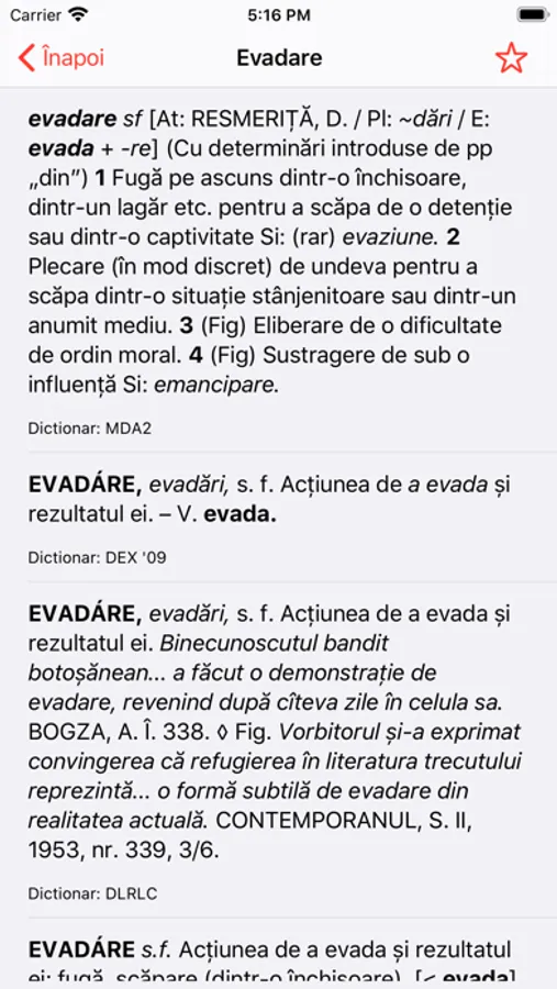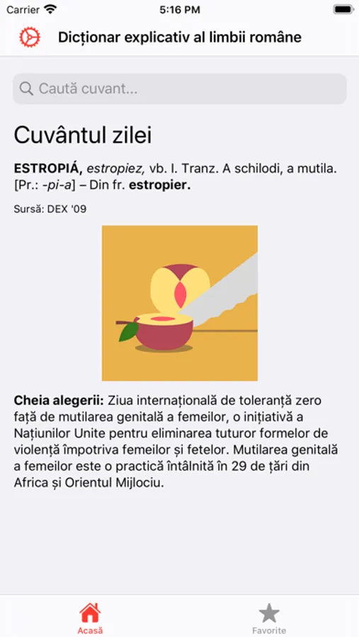 - Posibilitatea de a salva cuvinte la favorite