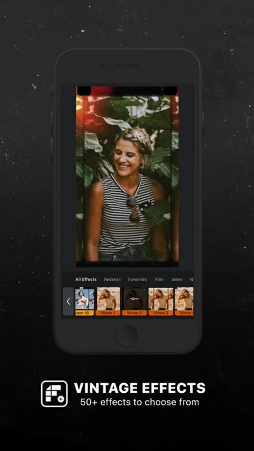 Bring your moments to life with Mache Film with over 100 effects and filters that include vintage themed presets such as 8mm, light leaks, lomo and many more. Upload your videos or photos and play around with the filters to find the style that suits you best - it’s that easy!