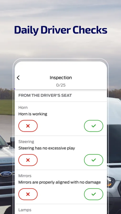 • Daily Driver Checks. Complete a simple checklist to ensure that your vehicle is road worthy.