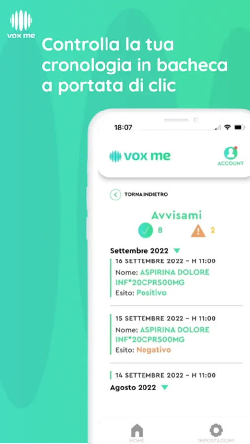 Controlla in bacheca i risultati dei tuoi promemoria Avvisami e Come Sto, la cronologia dei farmaci presi, gli allarmi e le richieste di aiuto.