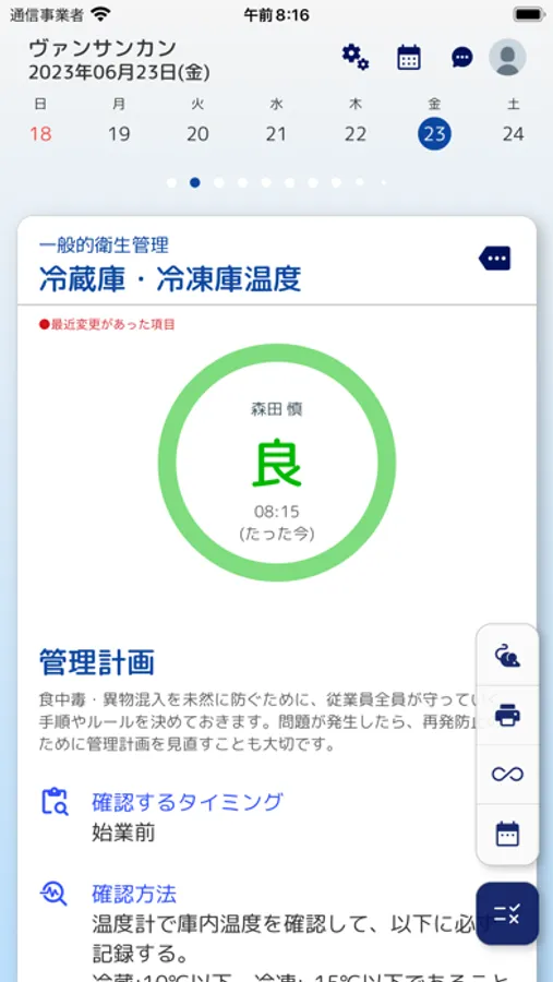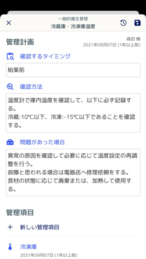 冷蔵庫・冷凍庫の温度、従業員の健康状態