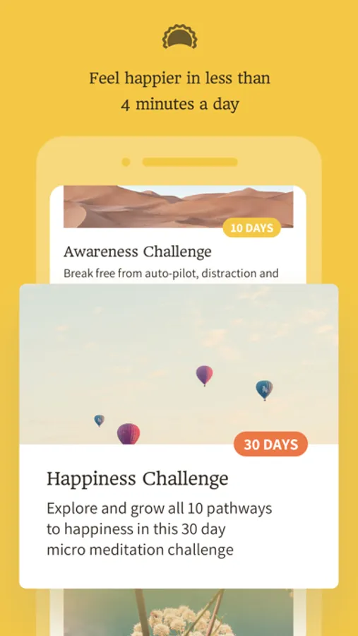 Start with 4-minute micro-meditations (with reminders at your chosen time) to help you make happiness a daily habit