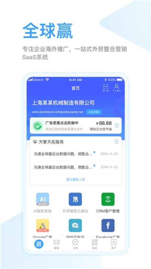 利用大数据算法勾画客户画像,帮助企业筛选目标客户;自助生产并发送营销内容,精准挖掘全球各地潜在客户