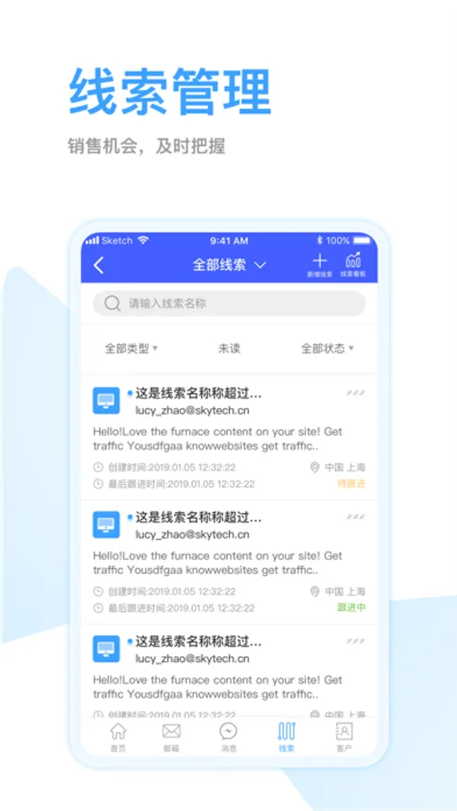 无障碍跨平台社交管理,多渠道社交线索跟踪分析;