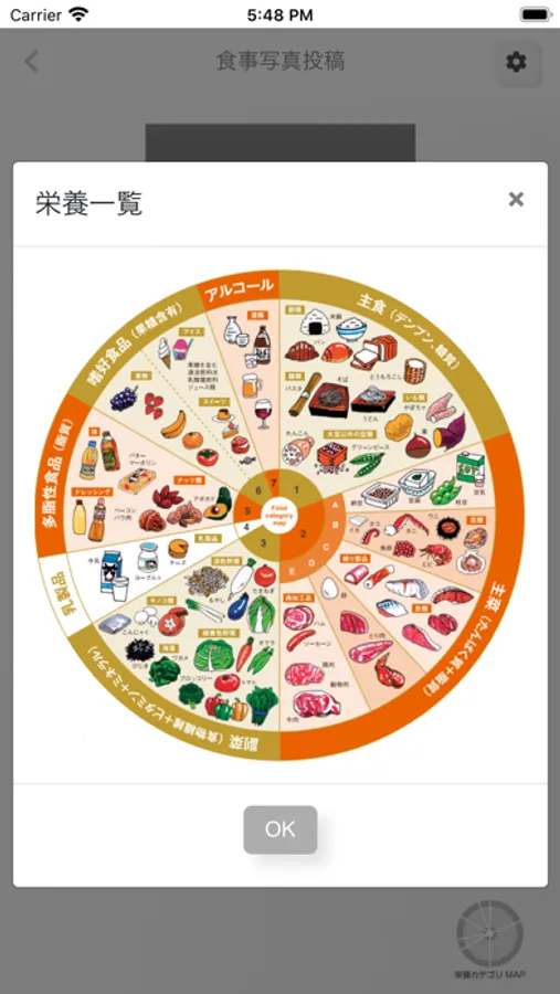 その間、撮影された食事の写真に対してAIが自動判別し、食品の自動判別をした後に、